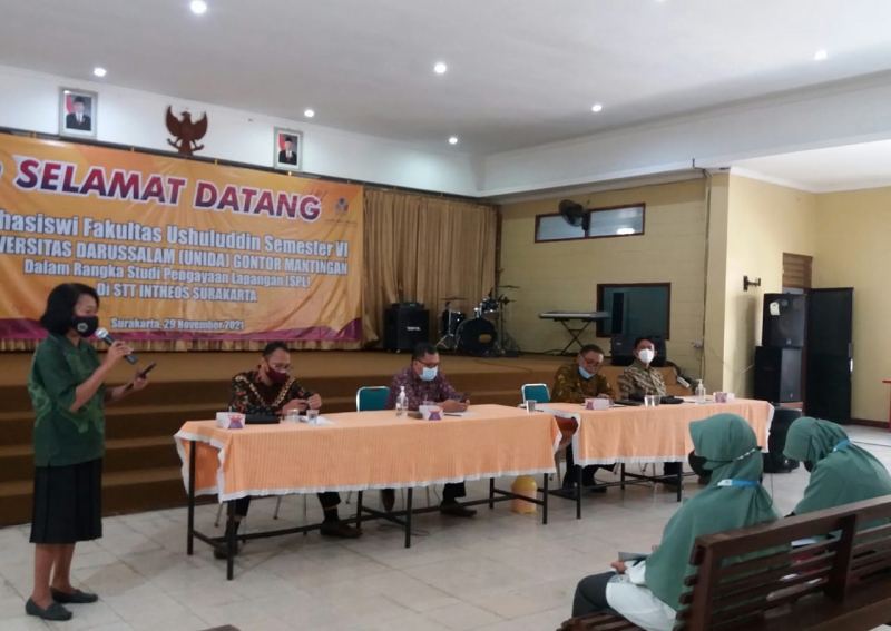Senin, 29 November 2021, STT Intheos Surakarta menerima kunjungan rombongan mahasiswi dari Fakultas Unshuluddin Universitas Darussalam (UNIDA) Gontor. Rombongan terdiri dari 19 orang mahasiswi dan 2 orang dosen pembimbing. Adapun tujuan kunjungan tersebut adalah untuk dapat memahami hubungan sosial antar umat beragama dan sekaligus untuk menjalin silaturahmi di antara uamt beragama. Rombongan disambut dengan baik oleh para pimpinan, dosen, maupun mahasiswa STT Intheos Surakarta. Melalui kunjungan tersebut diharapkan terjalin kerjasama yang lebih baik demi kemajuan bersama dalam pendidikan.