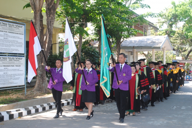 Sekolah Tinggi Teologi Intheos Surakarta pada hari Kamis, 26 September 2019 menyelenggarakan Wisuda Angkatan XXXVI untuk program sarjana dan Angkatan XV untuk program magister. Prosesi wisuda dimulai pukul 10.00 WIB dan bertempat di Aula "Andrew Evans" STT Intheos Surakarta. Wisuda pada tahun ini mengangkat tema "Tantangan Pendidikan Karakter pada Era Revolusi Industri 4.0". Menanggapi tema tersebut, Pdt. Dr. Dani Pranoto dalam khotbah wisuda tersebut menyampaikan pentingnya para wisudawan yang akan terjun ke dalam dunia pelayanan untuk dapat mengikuti dan sekaligus mengantisipasi perkembangan teknologi demi meningkatkan kualitas pelayanannya. Pebimas Kristen Jawa Tengah, Siswo Martono, S.PAK., M.Pd.K., mengapresiasi STT Intheos oleh karena pada tahun 2018 banyak lulusannya yang dapat mengisi formasi rekrutmen PNS guru PAK di wilayah Jawa Tengah. Beliau mengharapkan untuk rekrutmen tahun ini lulusan STT Intheos juga dapat berkontribusi mengisi formasi yang tersedia.