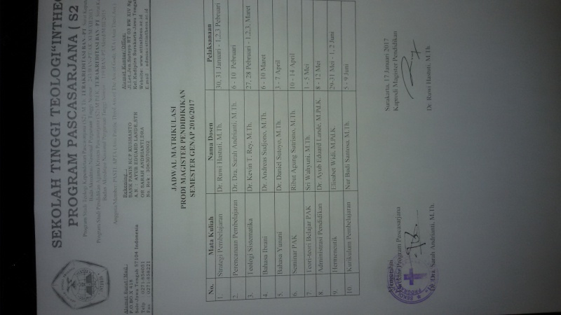 • Jadwal Perkuliahan S2 Teologi 2016/2017 Genap (532)